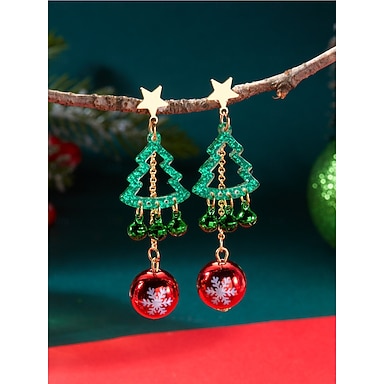 orecchini natalizi da donna, in lega e materiale acrilico, modelli festivi di renne, Babbo Natale e alberi di Natale, gioielli natalizi per feste e celebrazioni invernali