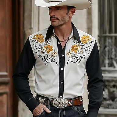 Per uomo Stampa Floreale Fiori Camicia Camicia Western Camicia da cowboy Manica Lunga Vintage Retrò Casuale All'aperto Abbigliamento da lavoro Estate Primavera Collo ripiegato Stampa 3D Camicia tipo