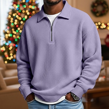 Per uomo Magliette Polo a Nido d'Ape Testurizzato All'aperto Casual Zip a un quarto Manica Lunga Moda Moderno Tinta unica Testurizzato Lavorato a maglia Primavera & Autunno Tutte le stagioni