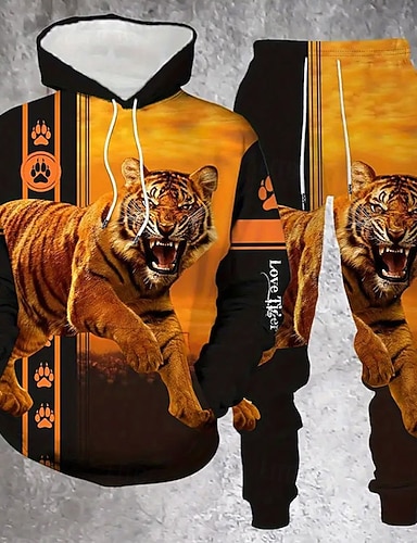 Per uomo Animale Tigre 2 pezzi Set di felpe 3D Tuta Felpa con Cappuccio Manica Lunga Pantaloni lunghi Con Cappuccio Casual Quotidiano Athleisure Abbigliamento casual alla moda Stampa 3D Primavera