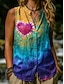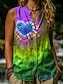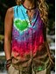 Per donna Camicia Gilet in cotone e lino Gilet di lino Bottoni Stampato Cuore Grafico Tinta a nodi Vintage Elegante Moderno Senza Maniche Collo alla coreana Top Regolari Casuale Quotidiano Blu Viola