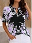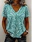 Per donna Maglietta Stampato Grafico Piante Elegante Classico Casual Manica Corta Scollo a V Top Regolari Casuale Quotidiano Blu Beige chiaro Viola chiaro Viola Verde Estate Primavera