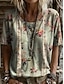 Per donna Blusa Stampato Grafico Vintage Quotidiano Elegante Manica Lunga Scollo a V Top Regolari Casuale Quotidiano Ferie Blu Rosso Viola Verde Estate Primavera
