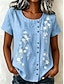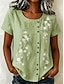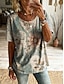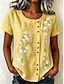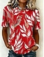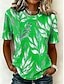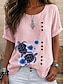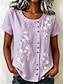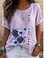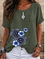 Per donna Maglietta Stampato Floreale Grafico Piante Moda Elegante Classico Manica Corta Girocollo Top lunghi Casuale Quotidiano Weekend Viola / Blu Verde salvia Giallo Blu turchese Grigio scuro