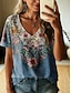 Per donna Maglietta Stampato Floreale Grafico Piante Vintage Elegante Casual Manica Corta Scollo a V Top Regolari Casuale Quotidiano Weekend Blu Nero Verde scuro Viola Arancione Estate Primavera