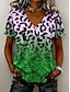 Per donna Maglietta Stampato Ombre Grafico Leopardo Vintage Elegante Casual Manica Corta Scollo a V Top Regolari Casuale Quotidiano Blu Viola Verde Estate Primavera