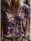 Per donna Camicia Stampato Floreale Grafico Vintage Elegante Moderno Manica Corta Scollo a V Collo alla coreana Top Regolari Casuale Quotidiano Blu Rosa Viola Verde Estate Primavera