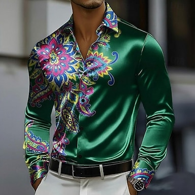 Per uomo Paisley Stampa Floreale Fiori Camicia Camicia in raso Camicia elegante Manica Lunga Vintage Retrò Vacanza Abbigliamento Quotidiano Estate Primavera Autunno Collo ripiegato Stampa 3D Camicie