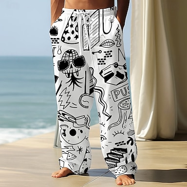 Per uomo Figura stilizzata Pantaloni Pantaloni Larghi Pantaloni casual Misura del girovita medio Vintage Retrò All'aperto Vacanza Abbigliamento casual alla moda Coulisse elastica in vita Pantaloni