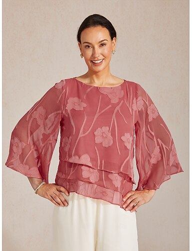 Per donna Camicetta trasparente Top in chiffon Pizzo Orlo asimmetrico Floreale Elegante Manica 3/4 Girocollo Top Regolari Quotidiano Ospite di nozze Wedgewood Estate Primavera Autunno