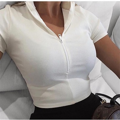 Per donna Tinta unita Top corto Estate Cerniera Manica Corta Casuale Athleisure Cotone Morbido Traspirante Allenamento in Palestra Corsa Camminata Jogging Nero Bianco Rosso abbigliamento sportivo