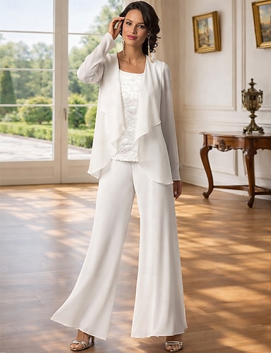 Tre Pezzi Lunghezza alla caviglia Abito da cerimonia per signora Manica 3/4 Scollo Tondo Festa Brillare & Splendere Ospite di nozze Ricevimento di matrimonio Riunione di famiglia Chiffon Pizzo con