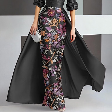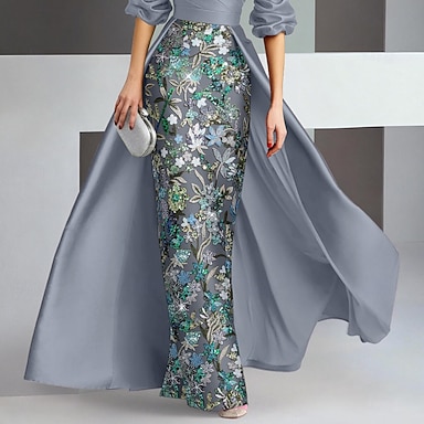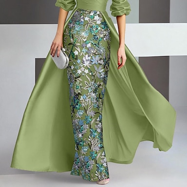 Tubino Colonna Lunghezza al pavimento Vestito da Festa Abito da Cocktail Abito da invitata a nozze Abito da cerimonia per signora Manica Lunga Girocollo Elegante Brillare & Splendere Formale Ospite