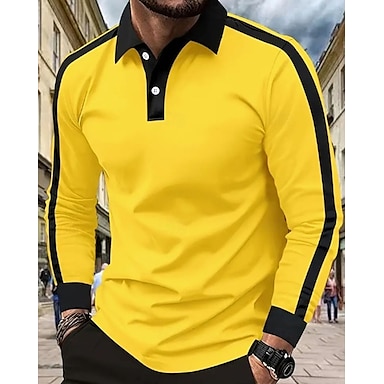 Per uomo Camicia da golf Golf Polo da golf Ufficio Informale Bavero Manica lunga Essenziale Moderno Color Block Collage Bottoni Primavera & Autunno Standard Vinaccia Nero Giallo Blu marino Camicia da