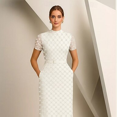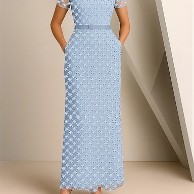 Abito Formale O-Line fino al Pavimento Abito da Sera Abito per la Madre della Sposa Maniche Corte Spalla Scoperta Elegante Vintage Lussuoso con Ricamo in Pizzo