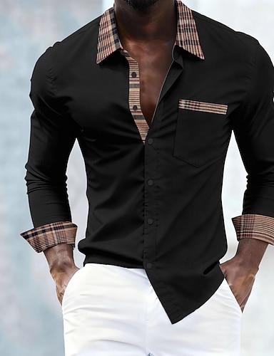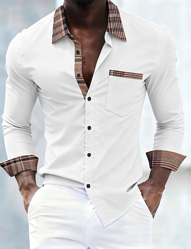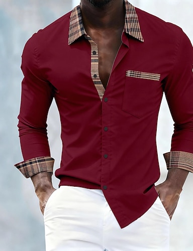 Per uomo Camicia Camicia elegante Camicia con Bottoni Plaid Matrimonio Quotidiano Striscia bianca-blu e nera Giallo Vino Manica Lunga Bavero Primavera & Autunno Abbigliamento Patchwork