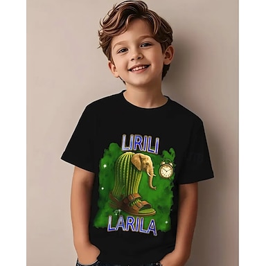Da ragazzo 3D Pop art Alfabetico maglietta T-shirt Manica corta Estate Primavera Di tendenza Essenziale Bambino 4-12 anni Girocollo Esterno Informale Giornaliero Standard