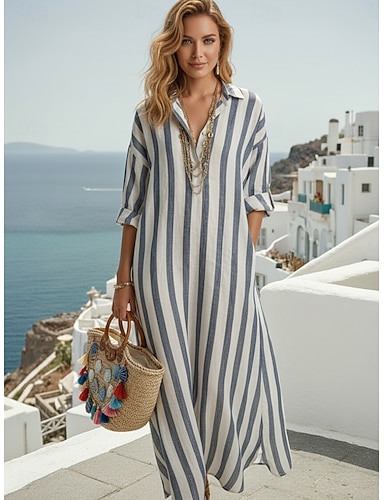 Linea ad A Lunghezza al pavimento Abito da Sera Da principessa Abito formale Elegante Manica Lunga Colletto a Camicia Formale Ferie Tasca Raso Pizzo con Ricamo
