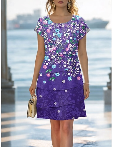 Per donna Mini Abito Abito a Tubino Abito Estivo Vacanza Boho Quotidiano Data Uscire Vestibilità regolare Floreale Grafico Manica Corta Girocollo Blu Viola Verde Estate Primavera
