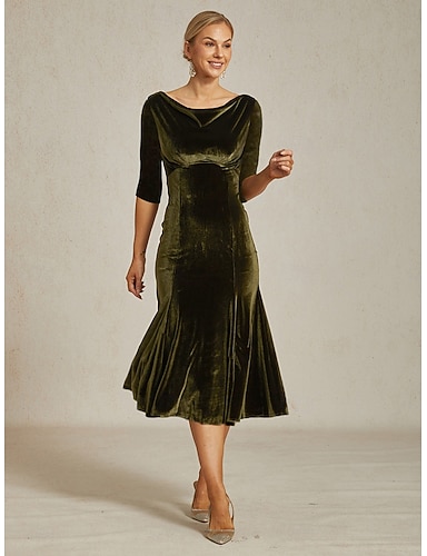 Abito a tubino colonna lunghezza intera lunghezza tè abito da festa abito da cocktail abito da invitata di nozze abito madre della sposa manica lunga collo quadrato elegante vintage festa formale con