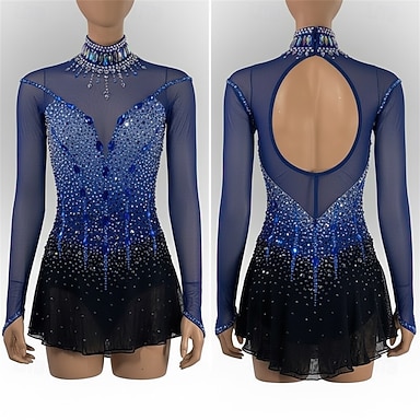 Abito da pattinaggio artistico Per donna Ragazze Pattinaggio sul ghiaccio Vestito Blu Foro per il pollice Spandex Alta elasticità Allenamento Competizione Vestiti da pattinaggio sul ghiaccio