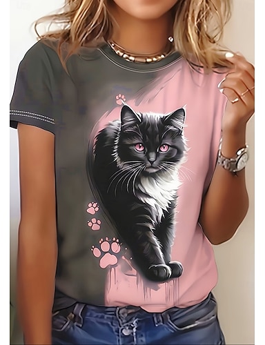 Da ragazza 3D Gatto T-shirt Camicia Rosa Manica corta Stampa 3D Estate Attivo Di tendenza stile sveglio Poliestere Bambino 3-12 anni Girocollo Esterno Informale Giornaliero Standard