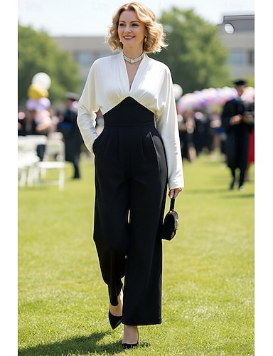 Per donna Set di abiti da smoking da 2 pezzi Guaina Formale Raso Elegante Semplice Manica Lunga Lunghezza al pavimento Scollo a V