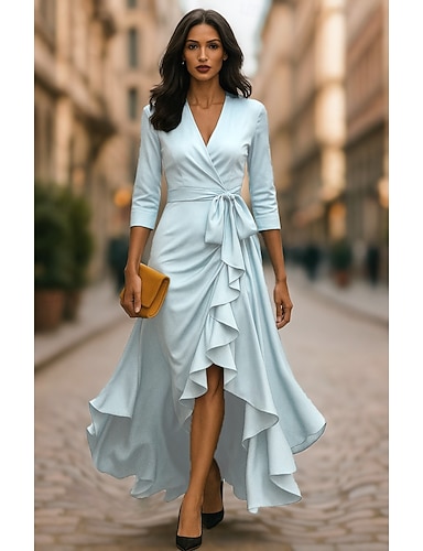 Linea ad A Lunghezza al pavimento Lunghezza alla caviglia Abito da Sera Elegante Quotidiano Setoso Mezza Manica Scollo a V Matrimonio Formale Raso con Pieghe