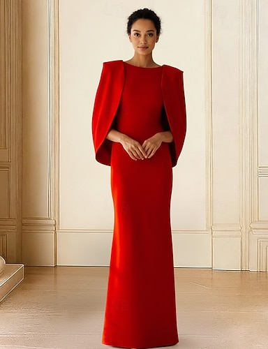 Tubino Colonna Lunghezza al pavimento Abiti da Ballo Abito da Sera Da principessa Abito formale Elegante Setoso Manica Lunga Scollo a Barca Matrimonio Formale Tasca Crepe Elasticizzato con Scialle