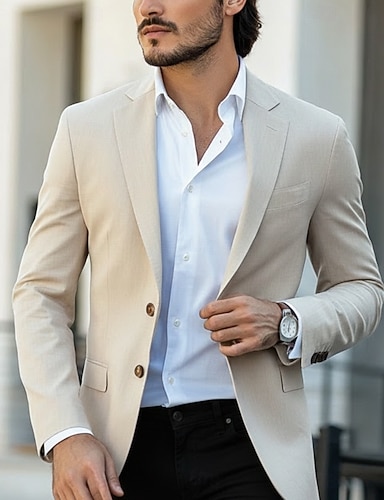 Per uomo Giacca blazer Blazer di Lino Colletto ad incastro Classico Tinta unita Blazer Blazer in lino Bianco Rosa Azzurro cielo Vestibilità su misura Monopetto Due Bottoni