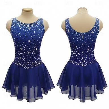 Abito da pattinaggio artistico Per donna Pattinaggio sul ghiaccio Vestito Blu Patchwork Schiena aperta Elasticizzato Allenamento Competizione Vestiti da pattinaggio sul ghiaccio Classico Cristallo
