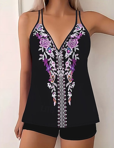 Per donna Costumi da bagno Tankini Due pezzi Vestito da spiaggia Costume da bagno 2 Pezzi Costumi da bagno modesti Vacanza Abbigliamento da Spiaggia Floreale Stampa Spallina Senza Maniche Costumi da