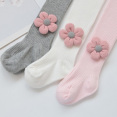 Bambino Da ragazza Calze Nero Bianco Rosa Tinta unica Increspato Primavera Autunno stile sveglio Interni 2-8 anni