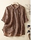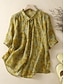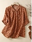 Per donna Camicie di cotone e lino Finto cotone e lino Tasca Bottoni Stampato Floreale Vintage Elegante Essenziale Manica 3/4 Colletto a Camicia Top Regolari Quotidiano Giallo Arancione Marrone