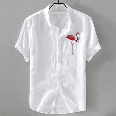 Per uomo Camicia di lino Camicia casual Camicia in cotone e lino Camicia con Bottoni Con Motivo Animale Vacanza Abbigliamento quotidiano Bianco Blu marino scuro Azzurro cielo Cachi Manica Corta Bavero