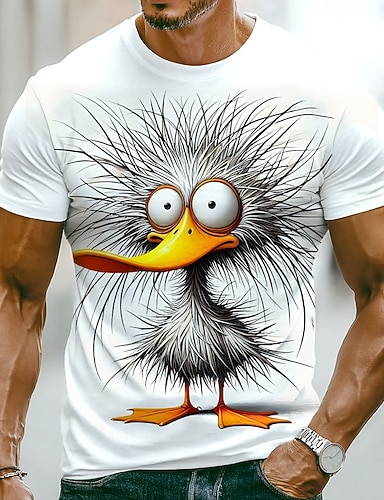 Per uomo Animale Divertente Anatra Scontroso Maglietta Manica Corta maglietta Stampa 3D Girocollo Camicia Esagerato Designer Feste Ferie Bianco 1 Cachi Bianco 2 Estate Primavera Abbigliamento S M L