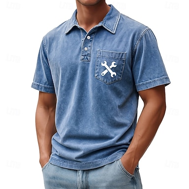 Per uomo Polo Camicia 100% cotone lavaggio acido Casuale Ferie Bavero Manica Corta Moda Essenziale Semplice Vintage ▾ angosciato Estate Primavera Blu Nero Blu marino Marrone Verde Verde militare Polo