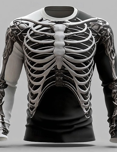 Per uomo 3D Scheletro Maglietta Manica Lunga maglietta Stampa 3D Girocollo Camicia Moda Esagerato Streetwear Casuale Quotidiano Blu Arancione Verde Estate Primavera Autunno Abbigliamento S M L XL XXL