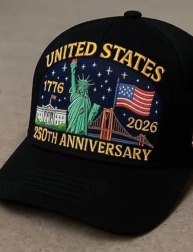 Per uomo Unisex Cappello per il 250° anniversario degli Stati Uniti Cappellino da Baseball Cappello da Sole Cappello da Camionista Nero Rosso Poliestere / Poliammide Regolabile Patriotico Vacanza