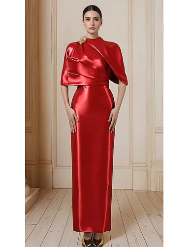 Tubino Colonna Lunghezza al pavimento Abito a mantella Abito da ballo con mantello Abito da Sera Abito formale Elegante Stile Celebrità Manica Lunga Collo Alto Matrimonio Formale Crepe Elasticizzato