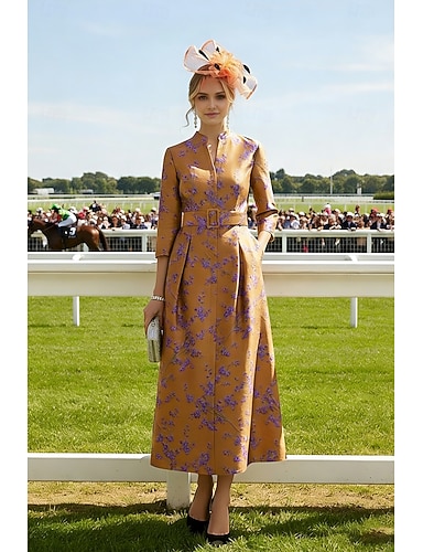 Linea ad A Lunghezza alla caviglia Lunghezza Tè Abito Derby Abiti da Cocktail Elegante Quotidiano Manica 3/4 Scollo a V Derby del Kentucky Jacquard con Tasca