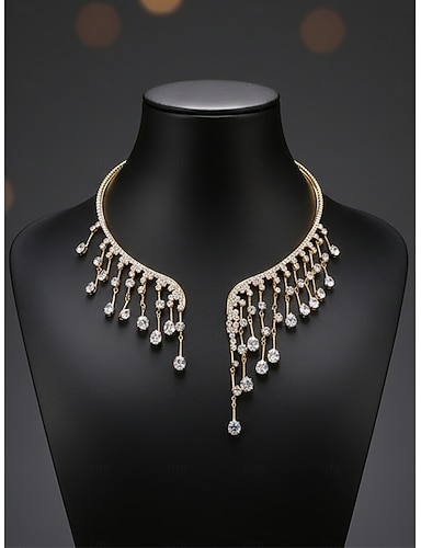 Collana girocollo Zircone Strass Per donna Elegante Moda Artistico Frangia con nappe A foglia Matrimonio Rotondo Collana Per Matrimonio Feste Quotidiano