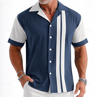 Per uomo Color Block Geometrica Camicia Camicia estiva Maglietta informale Manica corta Di tendenza Stile anni '50 Informale Da mare Giornaliero Per uscire Estate Collo ripiegabile Stampa Blu