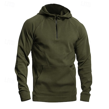 Per uomo Felpa con cappuccio Maglione Felpa con cappuccio e zip corta Rosso bordeaux Nero Verde militare Blu marino Cachi Con Cappuccio Semplice Tasca Sport & Outdoor Casuale Quotidiano Streetwear