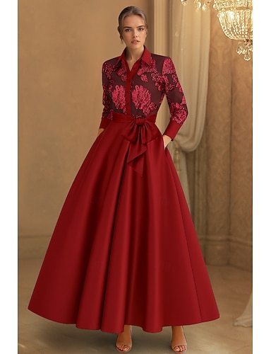 Linea ad A Lunghezza al pavimento Lunghezza alla caviglia Abito da Sera Da principessa Abito formale Elegante Scintillante Setoso Manica Lunga Colletto a Camicia Matrimonio Formale Tasca Raso Raso