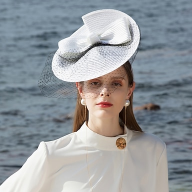 berretto A rete Paglia Cappelli da pescatore Tè Corsa di cavalli Elegante Con Fiocco Tulle Copricapo Copricapo
