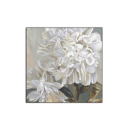 dipinto a olio fatto a mano con fiori bianchi e dorati su tela, decorazione da parete, originale dipinto floreale in foglia d'oro per la decorazione della casa
