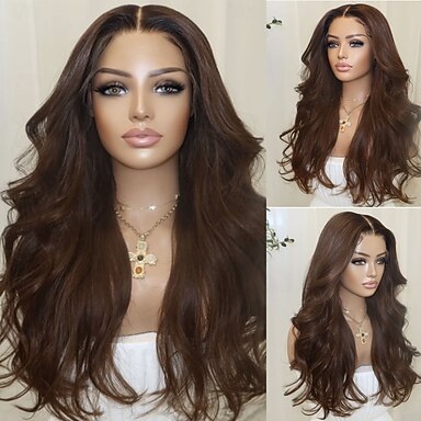 Capelli umani Remy 5x5 Chiusura 13x4 Fronte in Pizzo Parrucca Riga centrale Capelli brasiliani Ondulato Marrone Multicolore Parrucca 150% 180% Densità dei capelli con Capelli di Bambino Liscio