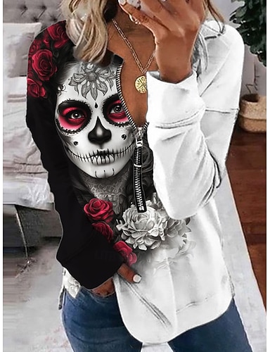 Felpa da donna Pullover Felpe con Zip Stampa Teschi Grafica Moda Casual Manica Lunga Collo Rotondo Regular Tops Street Dailywear Stampa Con Cerniera Rossa Arancione Verde Primavera Autunno Inverno