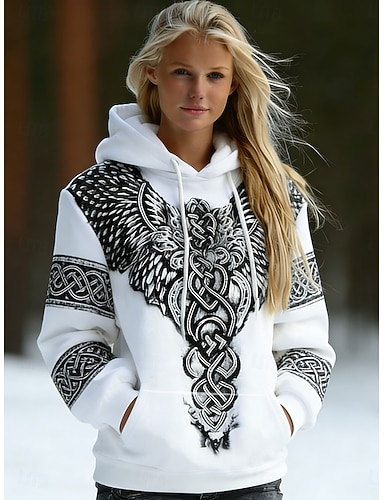 Per donna Felpa con cappuccio Stampato Tasca Frontale Grafico Geometrico Vintage Casual Boho Manica Lunga Con Cappuccio Top Regolari Streetwear Abbigliamento Quotidiano Blu Bianco Giallo Rosso